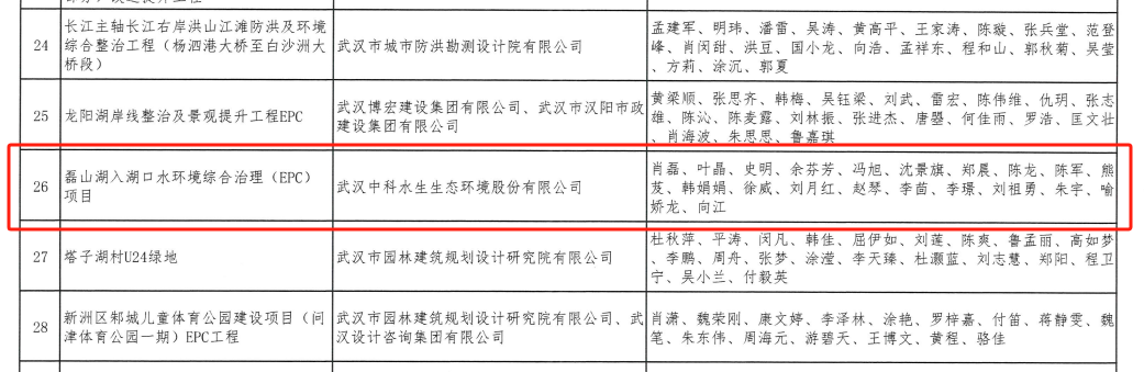 近日,武漢勘察設(shè)計協(xié)會公布了"2025年度武漢地區(qū)優(yōu)秀勘察設(shè)計獎評選活動"結(jié)果,武漢中科水生公司申報的磊山湖入湖口水環(huán)境綜合治理(EPC)項目榮獲建筑及園林景觀組設(shè)計二等獎。