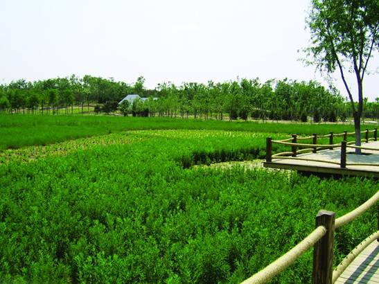 本項(xiàng)目濕地建造的目的是通過(guò)對(duì)清河污水處理廠尾水進(jìn)行深度處理,對(duì)公園及其人工湖進(jìn)行生態(tài)補(bǔ)水,以及其水系實(shí)施循環(huán)凈化,同時(shí)營(yíng)造濕地自然景觀。濕地類型因地制宜的選取了側(cè)向水平潛流構(gòu)建濕地、豎向上升流構(gòu)建濕地以及水平潛流、上升復(fù)合構(gòu)建濕地的組合工藝。該濕地建成后,人工湖湖水保持在地表水Ⅲ類。